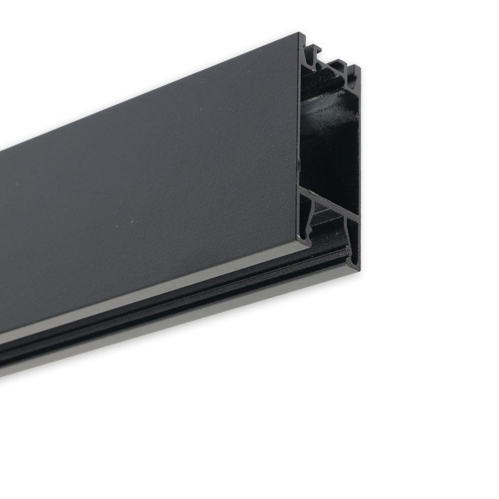 Gardinenprofil Curtain10 ONE HIGH, schwarz RAL 9005, 200cm sorgt in Verbindung mit LED-Flexbändern für eine elegante und blendarme Lichtführung.