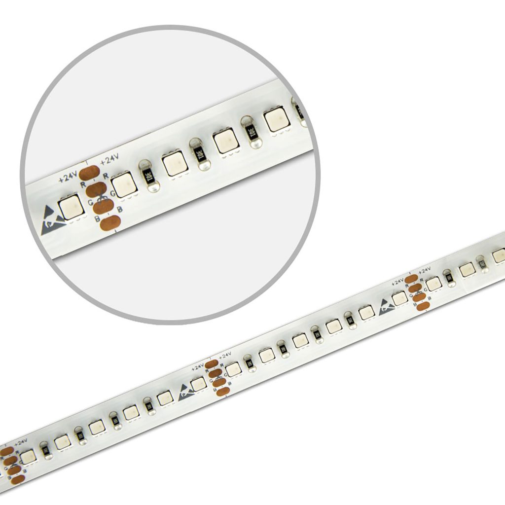 LED HEQ HighPower RGB Flexband, 24V DC, 28,8W, IP20, 5m Rolle, 120 LED/m gehört zu den flexiblen LED-Flexbandlösungen von ISOLED® und eignet sich hervorragend für moderne lineare Lichtakzente.