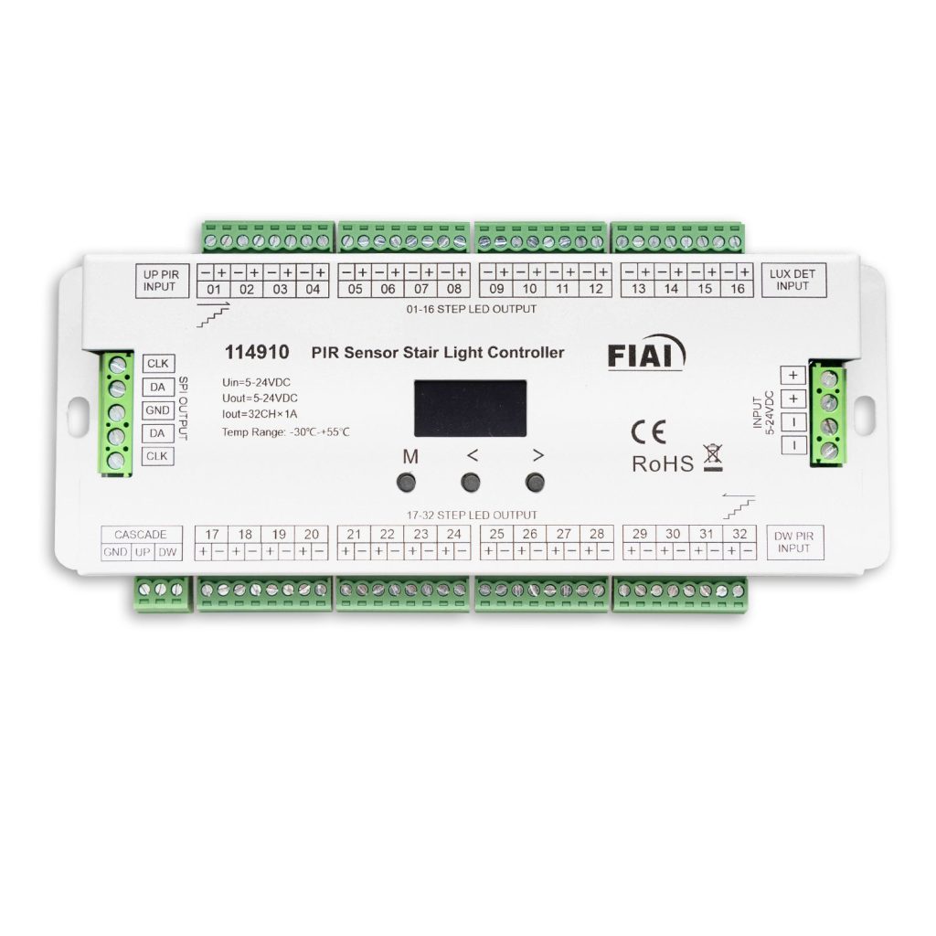 Treppen-Effekt PWM-Dimmer 5-24V DC, 32x1A + SPI-Output, 2 PIR Sensor + 2 Push-Tast Eingänge stammt aus dem professionellen ISOLED® Sortiment und eignet sich für langlebige und hochwertige Lichtprojekte.