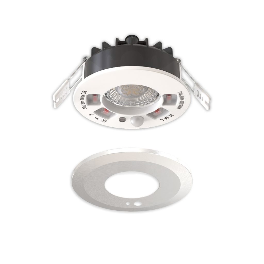 LED Einbaustrahler Vario-68 mit PIR-Sensor 6W, 60°, 2700|3000|4000|6000K, IP65, CRI90, nickel gebürstet ist ein leistungsstarker LED-Strahler, der Produkte, Räume oder architektonische Details gezielt ins Licht setzt.