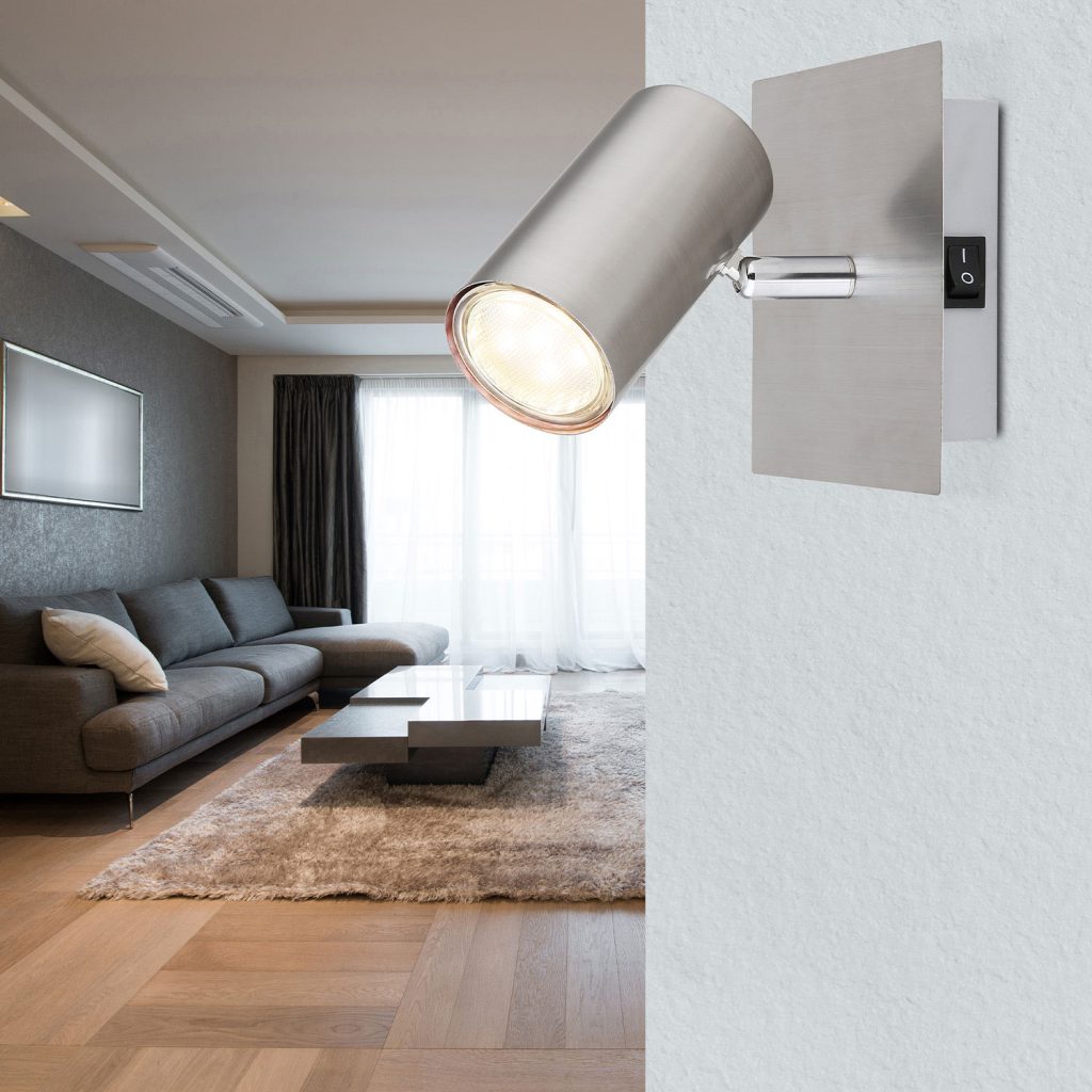 Wandleuchte nickel matt, mit Schalter, 1xGU10 Fassung, exkl. Leuchtmittel