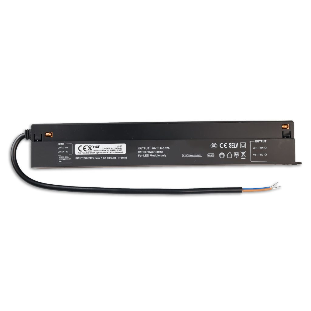 Track48 Inline-Trafo schwarz, 150W, 48V DC ist ein hochwertiger LED-Treiber oder ein professionelles Netzteil aus dem ISOLED® Sortiment.