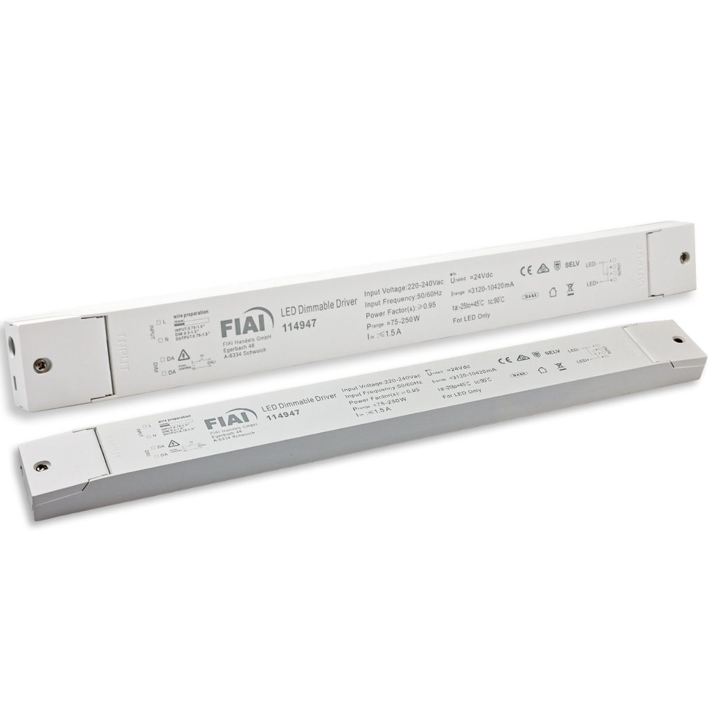 LED PWM-Trafo 24V/DC, 0-250W, Push/DALI-2 dimmbar, SELV, flach