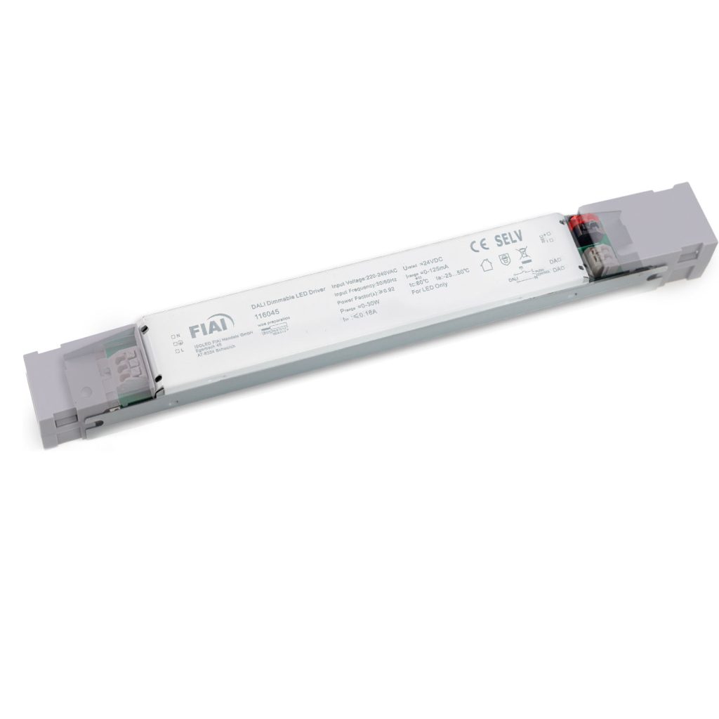 LED PWM-Trafo 24V/DC, 0-30W, Push/DALI-2 dimmbar, SELV, ultraflach ist ein hochwertiger LED-Treiber oder ein professionelles Netzteil aus dem ISOLED® Sortiment.