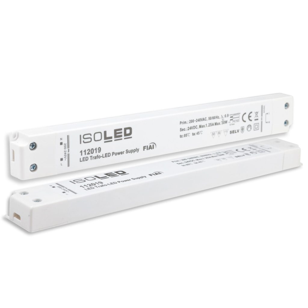 LED Trafo 24V/DC, 0-30W, SELV, ultraflach, ultraschmal ist ein hochwertiger LED-Treiber oder ein professionelles Netzteil aus dem ISOLED® Sortiment.