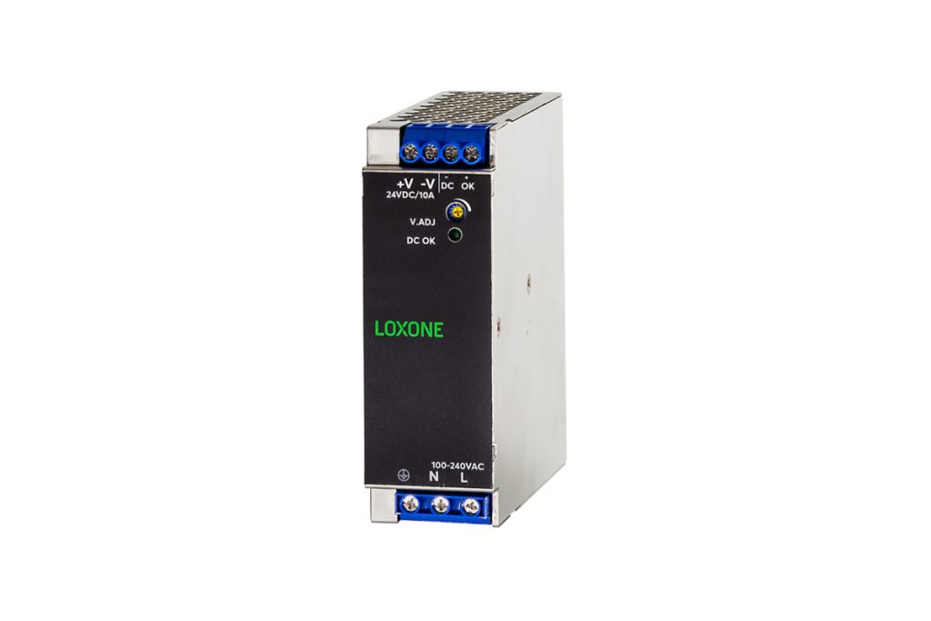Mit Netzteil 24V, 10A lässt sich effiziente Lichtsteuerung sauber in die Loxone Gebäudeautomation integrieren.