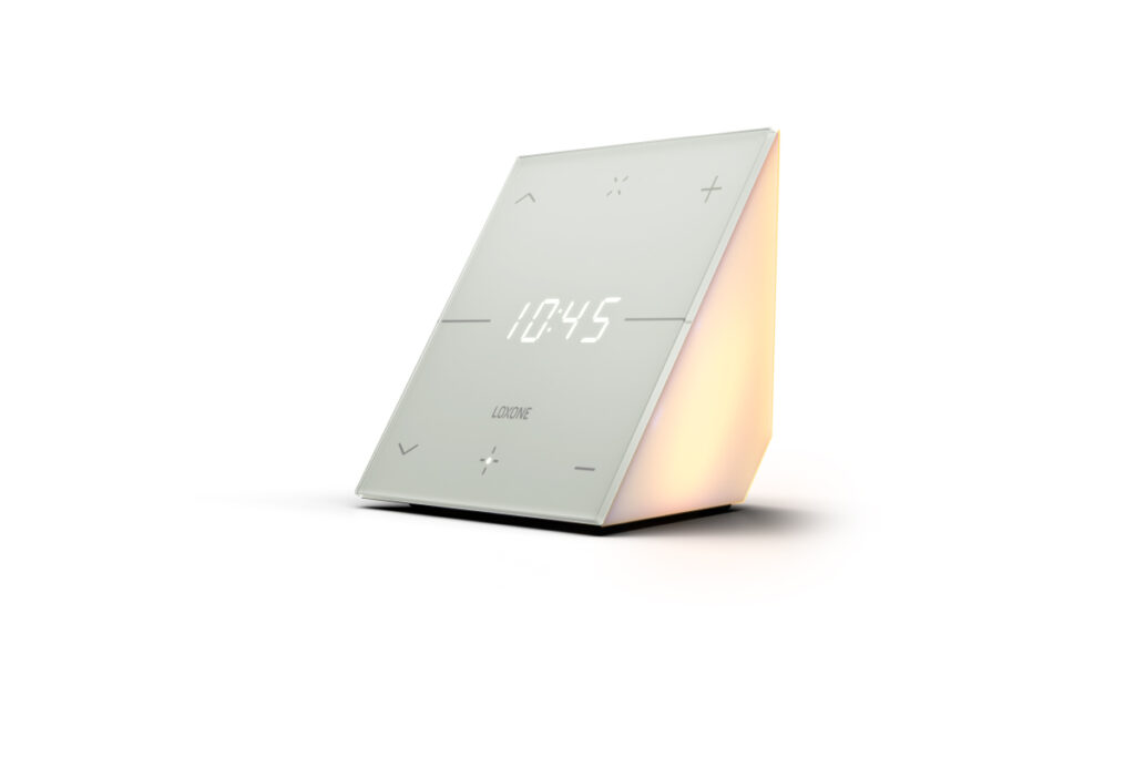 Das Loxone Touch Nightlight Air ist ein Nachtlicht mit integriertem Wecker und sieben Tastpunkten zur Bedienung der wichtigsten Funktionen eines Raumes. Es vereint Benutzerfreundlichkeit mit einem architekturfreundlichen, klaren Design. Dadurch passt es ideal auf den Nachttisch und fügt sich ebenso auf Schreibtischen, in Regalen und an vielen weiteren Orten perfekt ein.