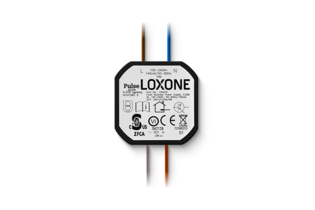 Mit Unterputz Netzteil 0,25A lässt sich smarte Zutrittssteuerung und intelligente Klimasteuerung sauber in die Loxone Gebäudeautomation integrieren.